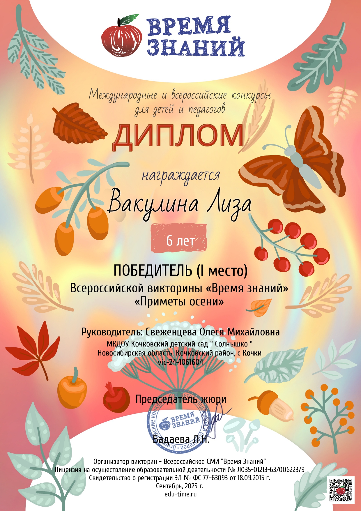 Всероссийская викторина "Приметы осени"
