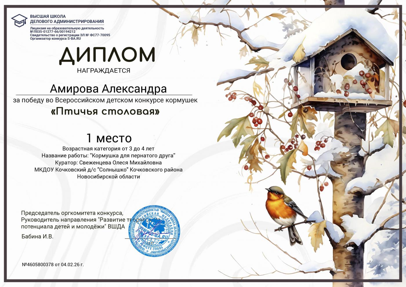 Всероссийский детский конкурс кормушек " Птичья столовая" Амирова Александра