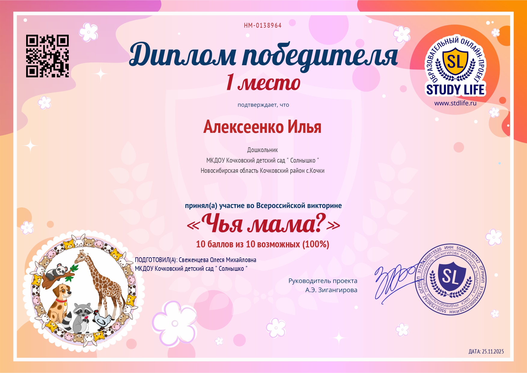 Всероссийская викторина "Чья, мама?" Алексеенко Илья