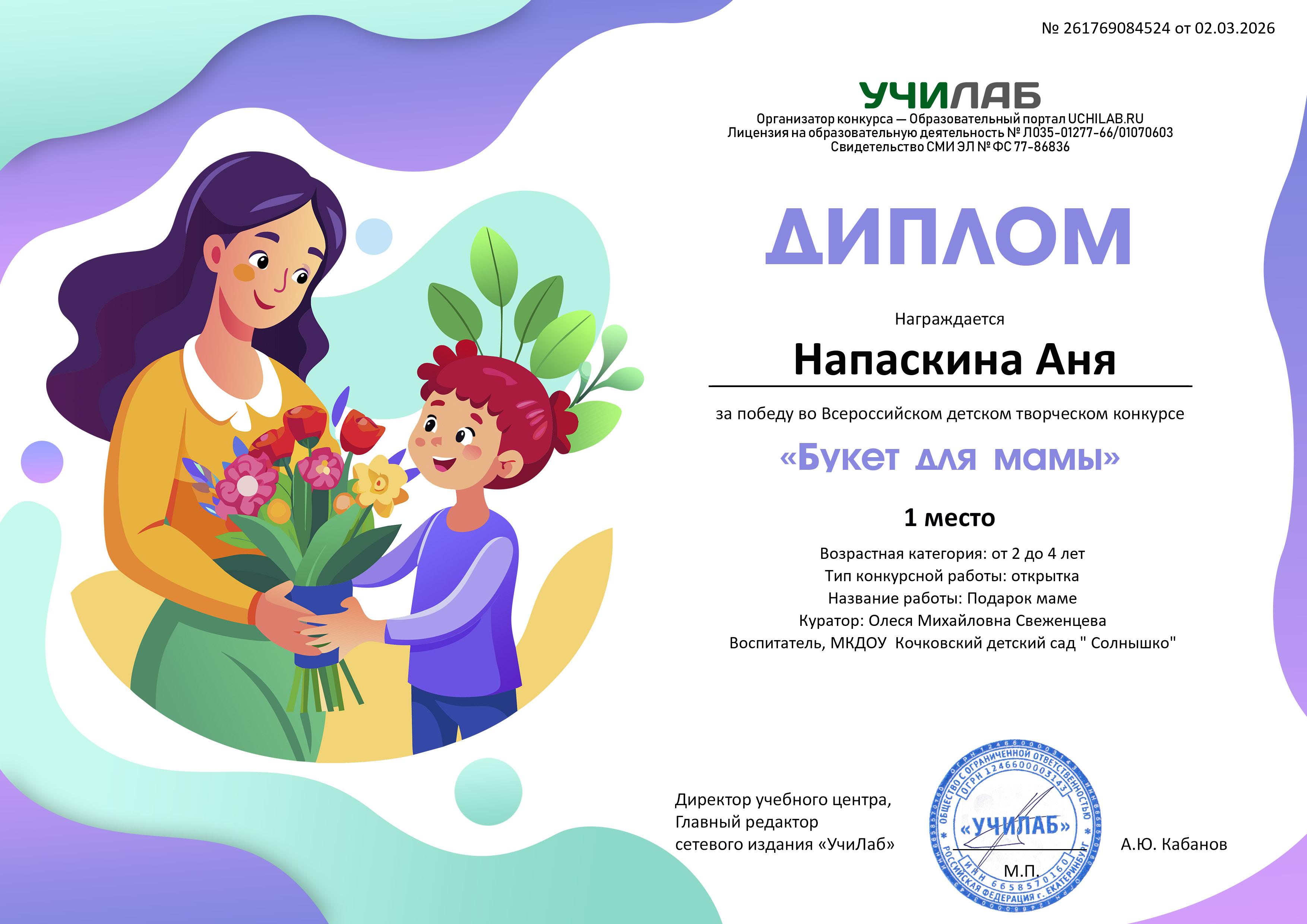 Всероссийский детский творческий конкурс "Букет для мамы" Напаскина Аня
